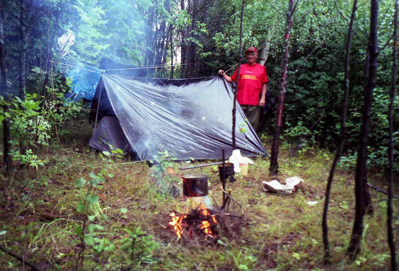 Какие-то злобные муравьи набрасывались на наши голые из-за насквозь промокшей обуви ноги и больно кусались. Легли спать. Всю ночь лил дождь, переходя временами на ливень. Влияние мегаполиса, подумал я, нужно отрываться от этой Москвы подальше. Мы так крепко спали, что и не почувствовали, как ветер приоткрыл вентиляцию в нашей, видавшей много двухскатной палатке, в результате к нам попала приличная порция воды. И наши спальники стали сырыми, и хорошо просушить их мы смогли лишь через несколько дней, так как при небольших время от времени разрывах в облаках нам надо было двигаться.