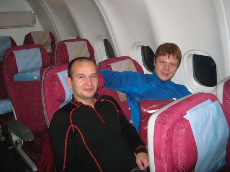 До Домодедово добрались на автобусе, почемуто опять нас послали на проходную бизнес-класса, а там ни очереди, ни контроля – в общем полетели! Катар аэрвейс – супер авиакомпания! Новенький Боинг А308 с персональными экранами, напичканнами видео, играми, музыкой и спутниковой навигацией. Стюардессы – тайки и русские, пара русских стюардов, полупустой самолет, ощущение, что на каждого по стюардессе. Кормят так себе, но вот бесплатный бар, с большим количеством разнообразных напитков – зло! Базовым напитком был выбран виски, Шамиль держал себя в руках, я напился изрядно))