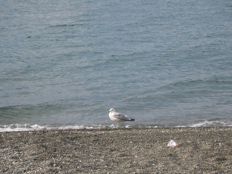 Мы уезжаем от моря. В Адлере заезжаем на набережную – проститься с морем. Сегодня оно необыкновенно красивое: сине-зеленое у горизонта и очень спокойное, волны с белыми гребешками, яркое, но не жаркое солнце. Адлер – небольшой тихий городок с большим ухоженным пляжем и песчаным берегом.